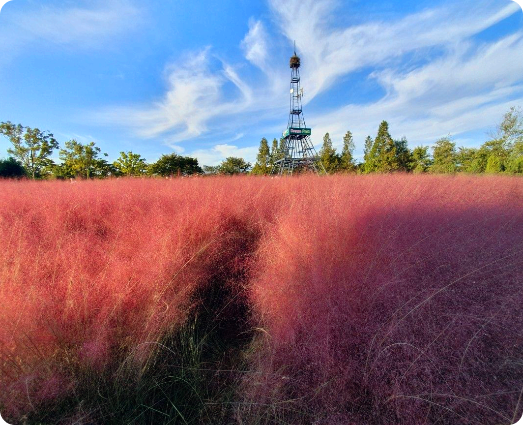 핑크뮬리 그라스(Pink Muhly Grass)는 2012년 미국 가든 클럽에서 올해의 식물로 선정된 이후로 2013년에 국내에 처음 소개되었습니다. 벼과 속씨식물로 9 ~ 11월에 피는 핑크색 꽃이 인상적이며 나들이객을 유혹합니다. 다음은 국내에서 꼭 한번 가볼 만한 핑크뮬리 명소를 소개하겠습니다.
